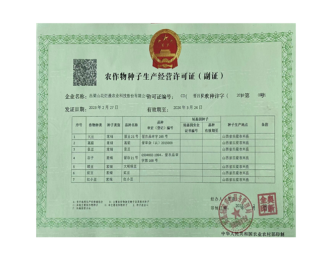呂梁山花爛漫農(nóng)業(yè)科技股份有限公司是山西省農(nóng)業(yè)產(chǎn)業(yè)化重點(diǎn)龍頭企業(yè),公司成立于2008年,法人代表賀虎平,注冊資本1000 萬元,現(xiàn)有員工 30 人。公司位于興縣蔡家會鎮(zhèn)蔡家會村建有占地面積1萬多平方米生產(chǎn)區(qū)和辦公區(qū),年總加工雜糧能力達(dá)到4萬噸。擁有一套日精加工50噸谷子成套設(shè)備生產(chǎn)流水線;擁有一套日精加工30噸豆面、蕎面設(shè)備流水生產(chǎn)線;擁有一套日精加工50噸紅小豆、豇豆、綠豆、腎型黃豆、紅蕓豆設(shè)備流水生產(chǎn)線,2020年引進(jìn)省農(nóng)科院農(nóng)產(chǎn)品加工研究所谷子精深加工技術(shù),目前設(shè)計年產(chǎn)300噸的小米油加工一條龍生產(chǎn)線已經(jīng)安裝調(diào)試完畢,產(chǎn)品經(jīng)化驗(yàn)達(dá)到國家一級油標(biāo)準(zhǔn),并獲得兩項專利證書。主要產(chǎn)品有“山花爛漫”牌有機(jī)小米、綠色小米各種精美包裝系列;蔡家會村豇豆面、豌豆面等雜糧面、手搟豆面系列、以及有機(jī)精品雜糧系列。擁有“山花爛漫”山西省著名商標(biāo)。公司采用線下和線上銷售相結(jié)合的營銷模式。